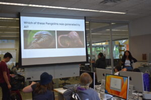 Following a brief snack break, the participants delved into the heart of the event at the CSIL Labs, where they embarked on a journey to demystify AI and explore the workings of large language models (LLMs) like ChatGPT. Through interactive sessions and hands-on activities, the girls gained a deeper understanding of AI’s fundamentals, including its applications in everyday life.